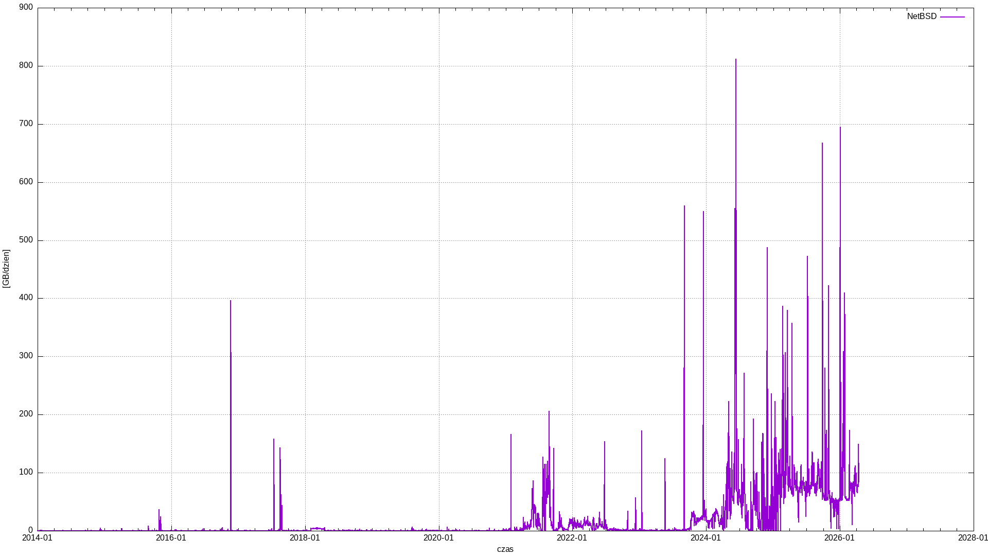 Poniżej pokazany dla tej samej skali pionowej, porządek według wielkości transferu w ciągu ostatniego miesiąca. Po kliknięciu na każdy z obrazków można zobaczyć wykres w całym zakresie wielkości transferów dziennych.